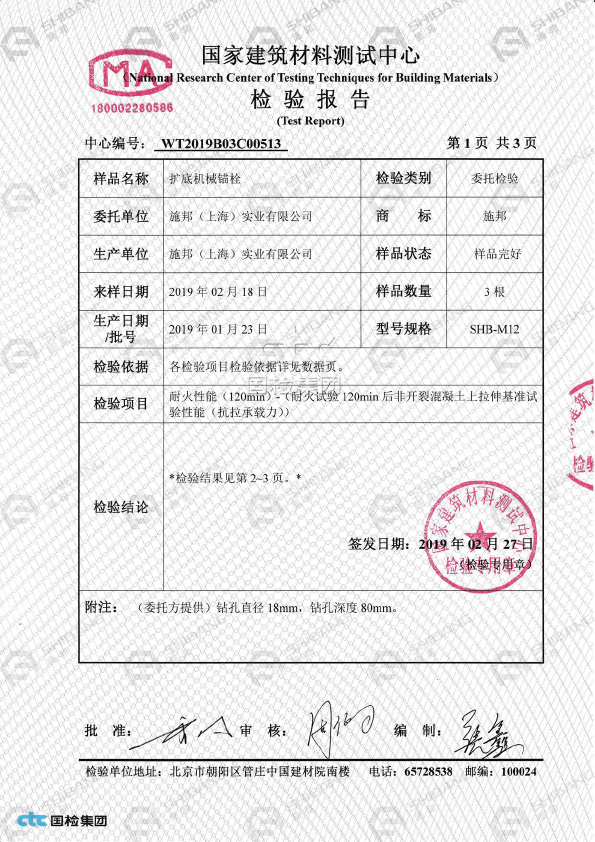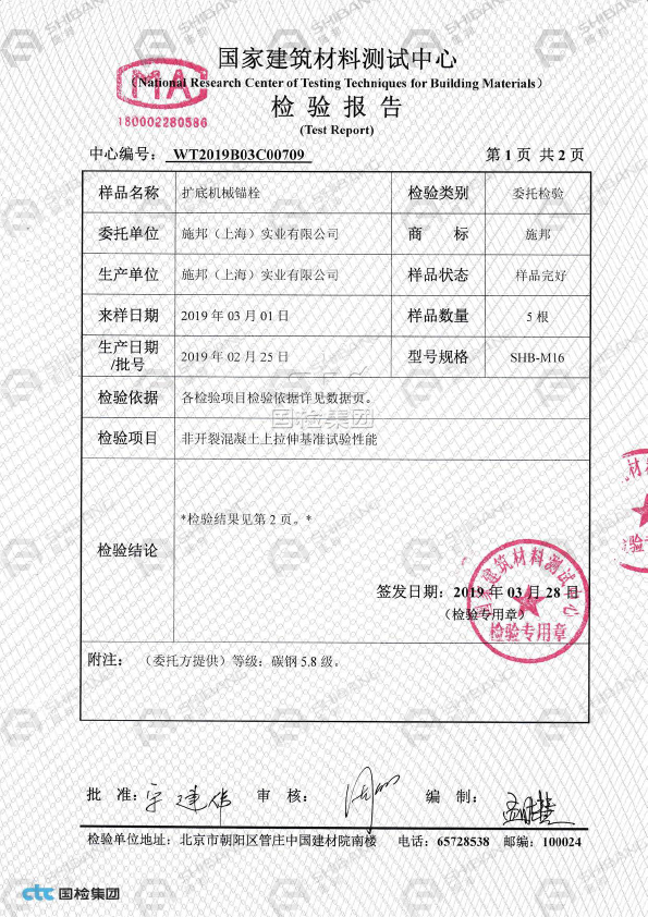 SHB-后扩(切)底机械锚栓的优势