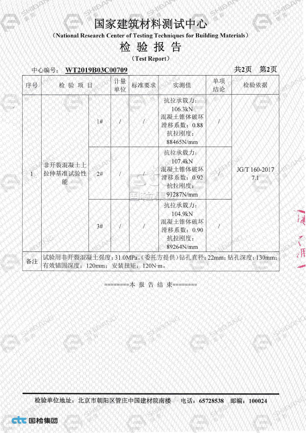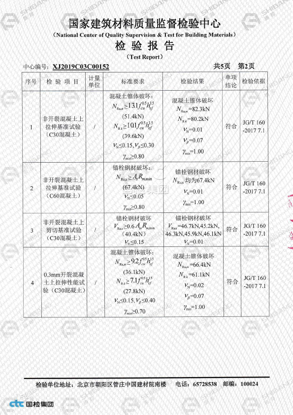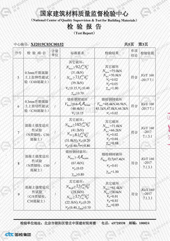 表格未列出的产品,请参照《JGJ145-2013混凝土结构后锚固技术规程》按照承载力极限状态计算方式得出相应数据,具体方案请咨询施邦 (上海) 实业有限公司技术部