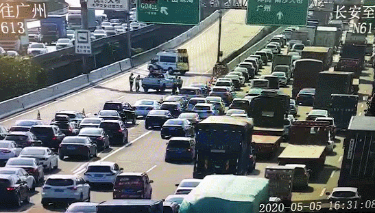 16点06分,虎门大桥公司启动《虎门区域跨江大桥应急保畅通联动预案》一级响应,太平立交站、威远A站、南沙B站入口均实施全封闭交通管制,往广珠东高速方向车辆分流至威远B站出口、往广深高速方向车辆分流至南沙A出口下高速。