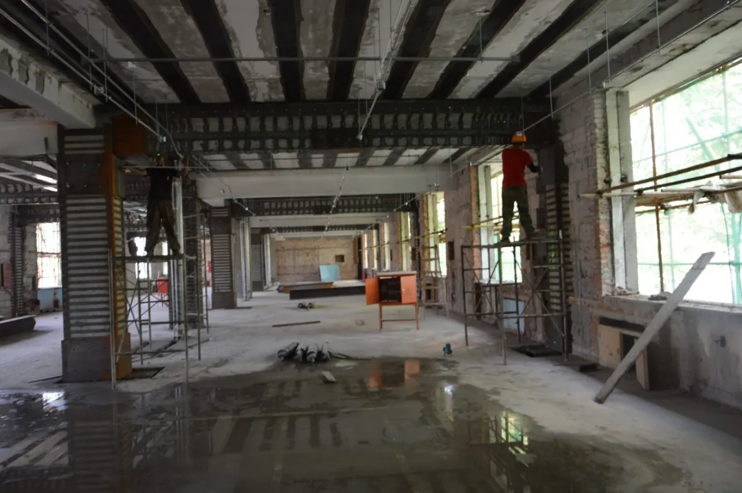 3、如果遇到不平或有缺陷的部位,要用结构胶搅水泥砂浆抹平,抹平后才能准备下一道工序。