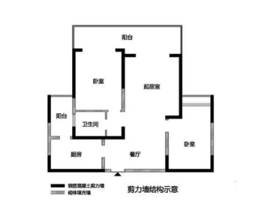 剪力墙结构是用钢筋混凝土墙板来代替框架结构中的梁柱,能承担各类荷载引起的内力,并能有效控制结构的水平力,这种用钢筋混凝土墙板来承受竖向和水平力的结构称为剪力墙结构。这种结构在高层房屋中被大量运用。通常设计图纸上面涂黑的墙体就是钢筋混凝土剪力墙,千万不要破坏。用斜线填充的是砌块墙体,实际上不起结构作用,因而可以进行适当的改造。